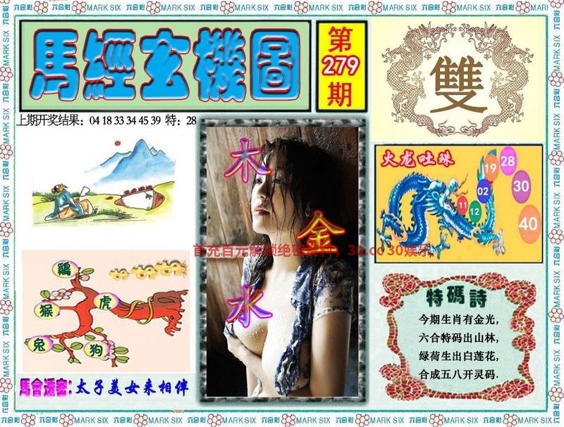 282期马经玄机 特碼詩:十二生肖我在中,牛鸡成群我来发,牛鬼蛇神四方躲,虎猴相冲定本期. 解肖:鼠虎鸡猴牛 |